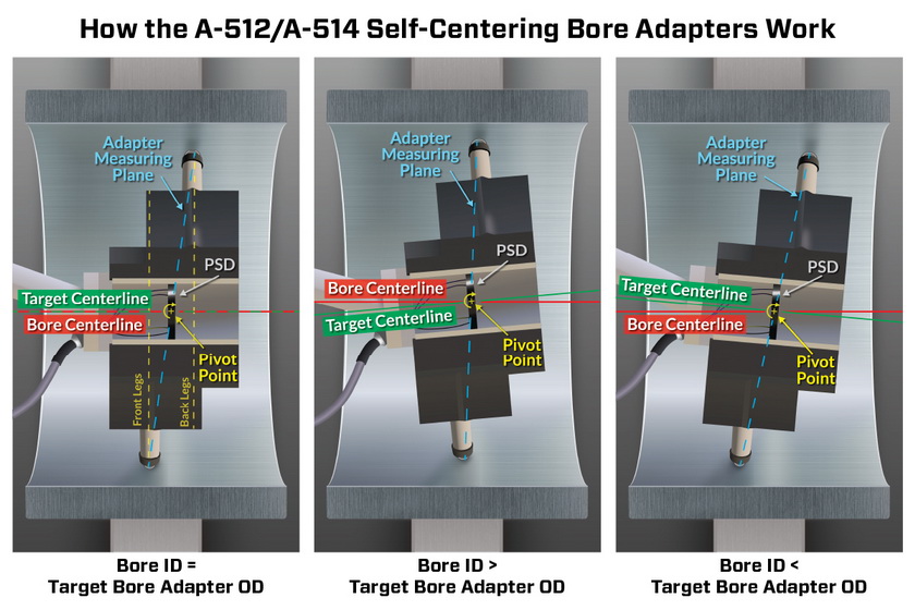Hamar Laser has developed the world’s first self-centering targets (A-510, A-512, T-220, T-221, T-1240) and bore adapters (A-510STA/A-510LTA, A-512STA/A-512LTA, A-514A/B/C, T-221STA) that use no moving parts to self center in a bore. It takes just seconds to position the target in the barrel for an accurate measurement down to .0002 in. (0.005 mm). This eliminates the annoying 0 and 180 measurements needed for typical bore targets.